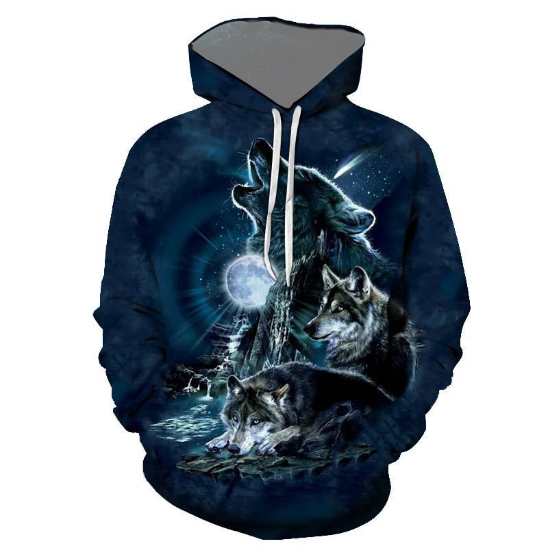 国境を越えた対外貿易アマゾン男装秋冬長袖ガーディアン欧米街頭帽子ガーディアン3d狼プリントガーディアン男