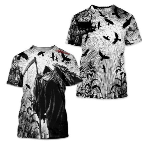 Colison Afflictionレトロハロウィンtシャツメンズ3Dプリントスカルホラー半袖コスチューム