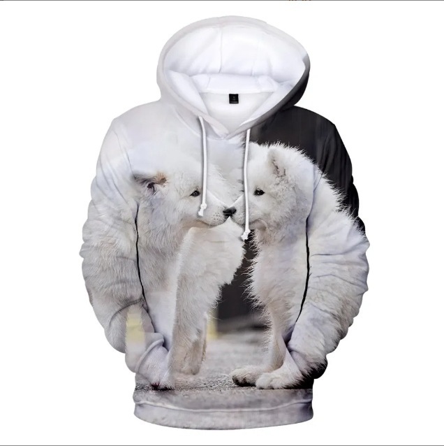 春秋新作フード付き狐狼3dデジタルプリント空気層ゆるい男性プルオーバー