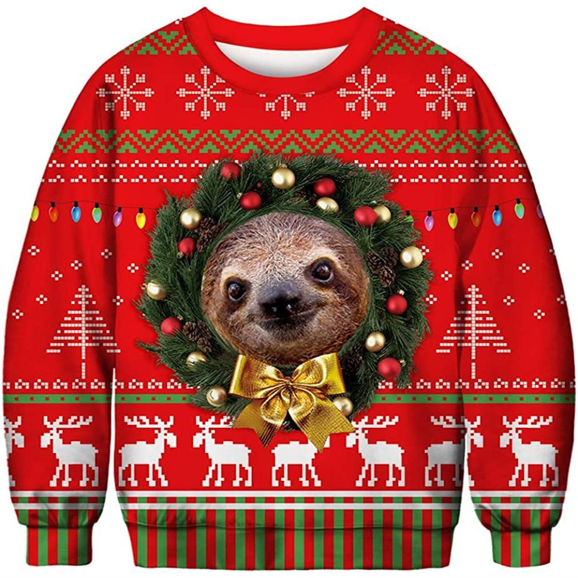 アマゾン欧米の国境を越えた新型の3dクリスマスのガードルの丸襟の頭の男女の同じタイプのカップルは長袖の上着を詰めます。