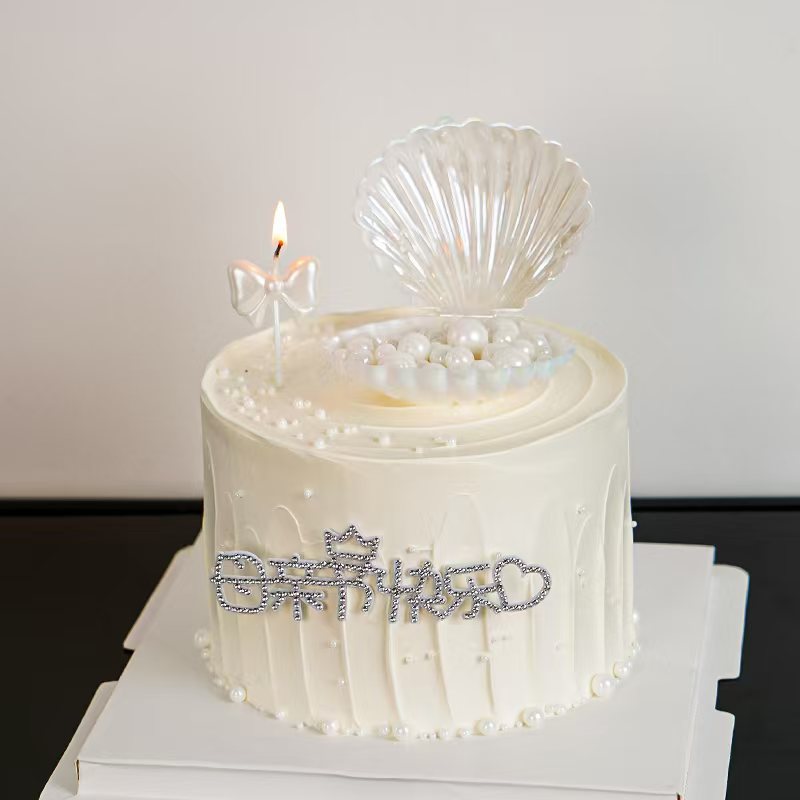 2025 母の日美しいケーキデコレーション真珠光沢のあるシェルオーナメントリボンキャンドルハッピー母の日プラグイン