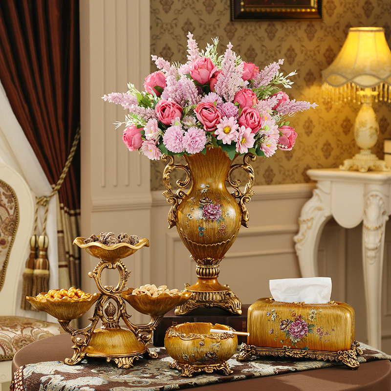 ヨーロッパのフルーツプレートセット、家庭用家具、花と鳥、ホームリビングルーム、デスクトップ収納トレイ、宮殿のモダンな装飾品