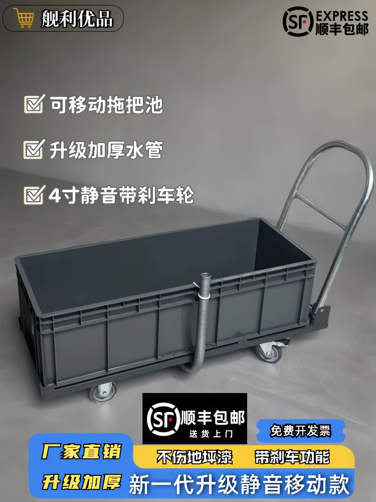 移動式清掃モップ車 ブレーキ付きモッププール 工場モップバケツ 長方形シンク 学校清掃モップ車