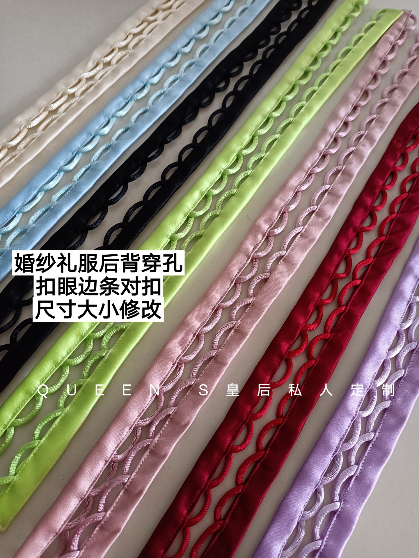 ウェディングドレスのバックストラップ、穴あきボタンホール、ボタンウェディングドレスのジッパーをストラップに変更、アクセサリーのサイズ変更