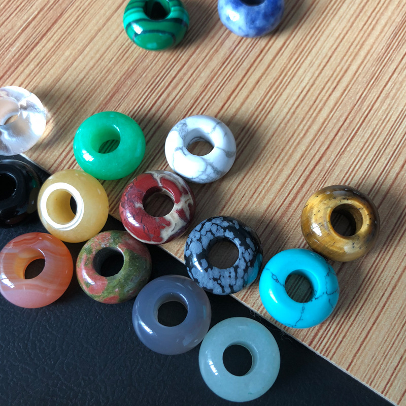 14 ミリメートル大穴フラットビーズアベンチュリン虎目石ピンククリスタルトパーズ大穴そろばん手作りロープアクセサリー DIY アクセサリー