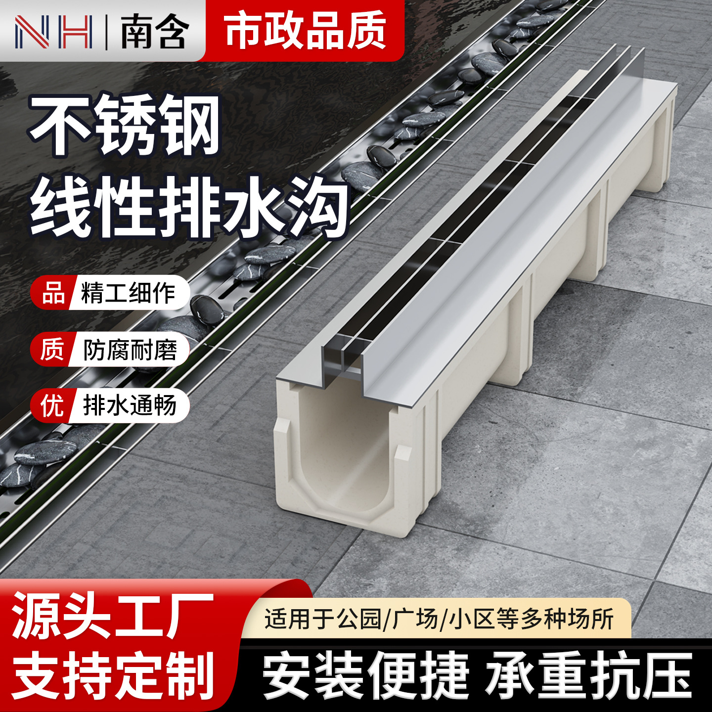 ステンレス製リニア排水溝 U字溝仕上げ 隙間下水道カバー 庭樹脂排水溝