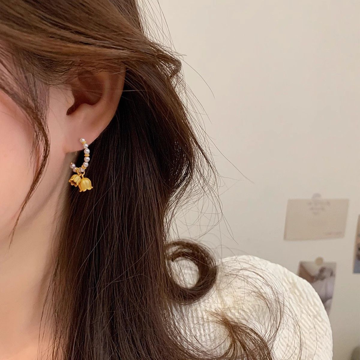 フランスの高級感鈴蘭真珠イヤリング女性ins清新な百合耳ペンダント