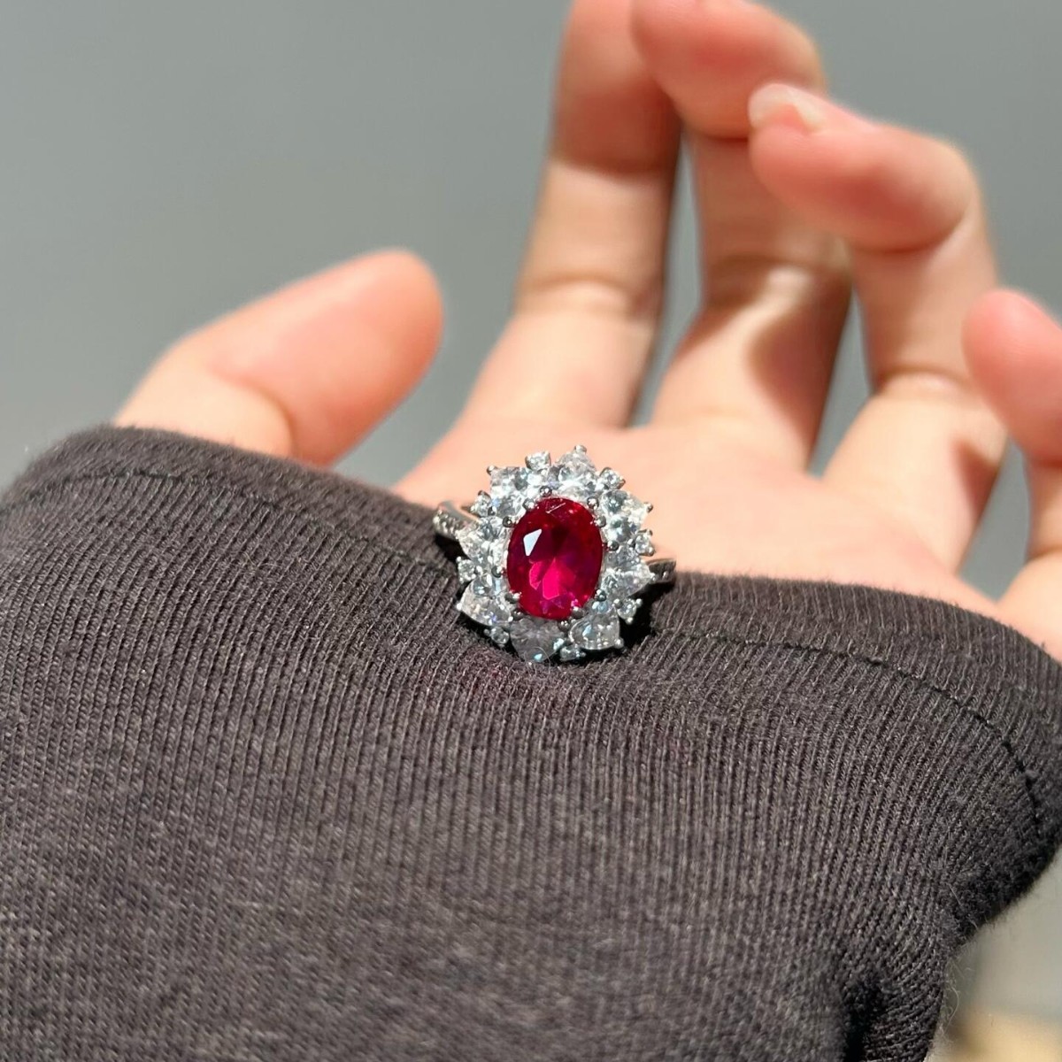 フレンチライトラグジュアリーフルダイヤモンドブラッドレッドピジョンエッグリングレディースラグジュアリーハイエンドリングニッチパーソナライズデザイン人差し指リング