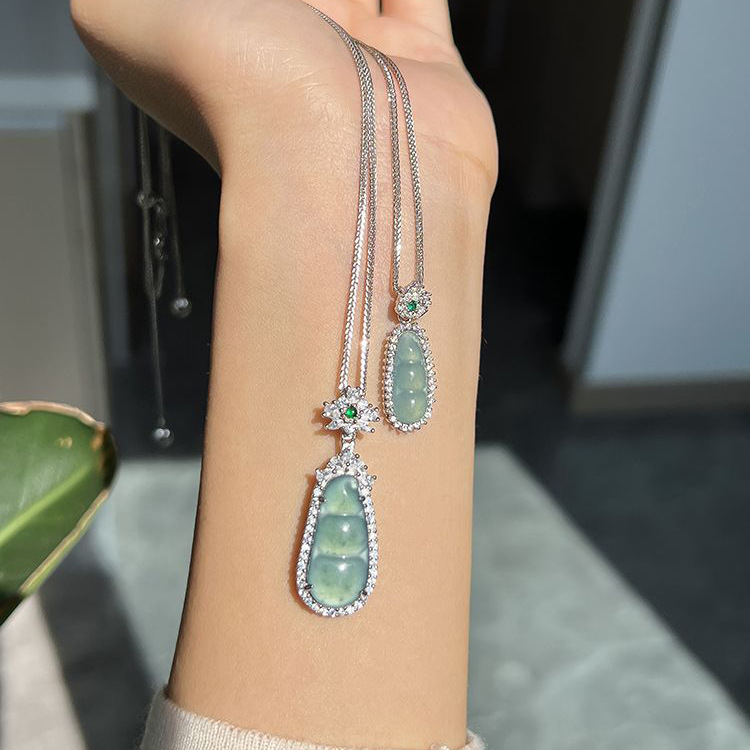 新中国式の青い水にダイヤモンドの平安豆のペンダントのネックレスを入れます。