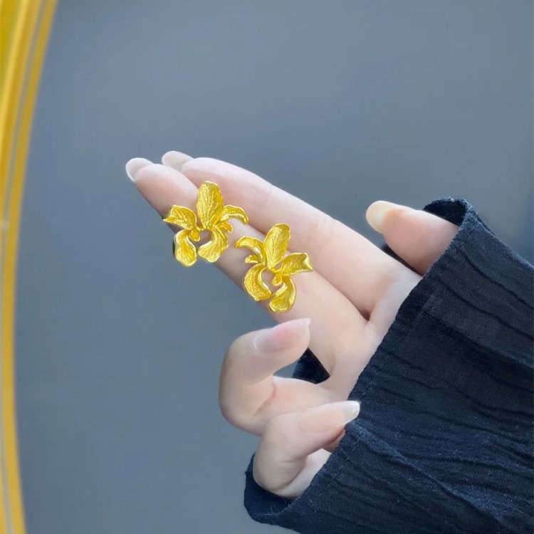 新中国式古法アイリスピアス女性レトロ気質高級感イヤリングins小衆百合デザイン耳飾り