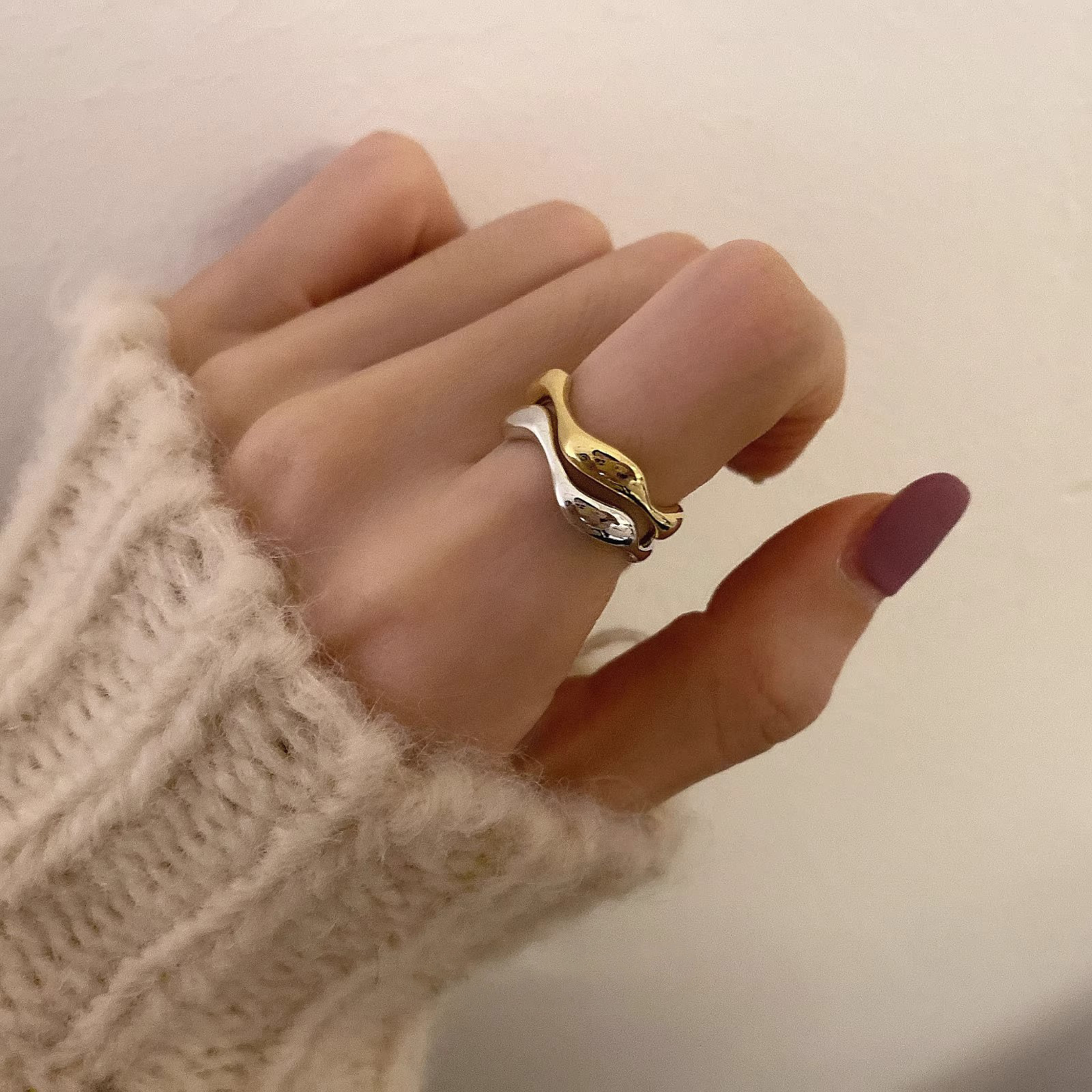 中古風点ドリルの指輪の女性insレトロな大衆がデザインの指輪を重ねて洗練された高級感のある指の指輪をかぶっている