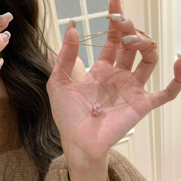 フランスの軽い豪華なバラのピンクの小さい腰のネックレスの女性の精緻な高級感の首の鎖の独特な小さい大衆の設計感の鎖