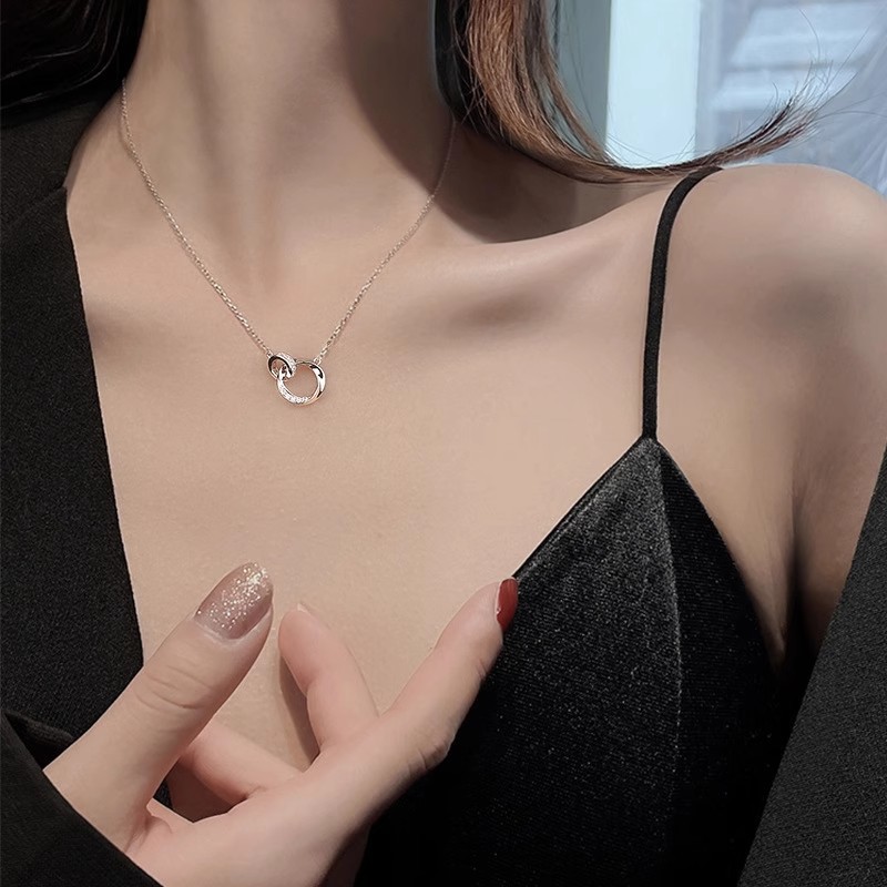 シンプルで冷たい風フラッシュドリルのリングがネックレスを掛けている女性の洗練された高級感があります。