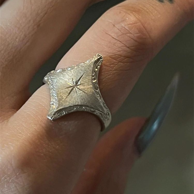 中古の糸を引く八芒星の口の指輪の女性のinsの百合の清冷感の指環の軽い豪華な大衆は食事の指の指輪を設計します。
