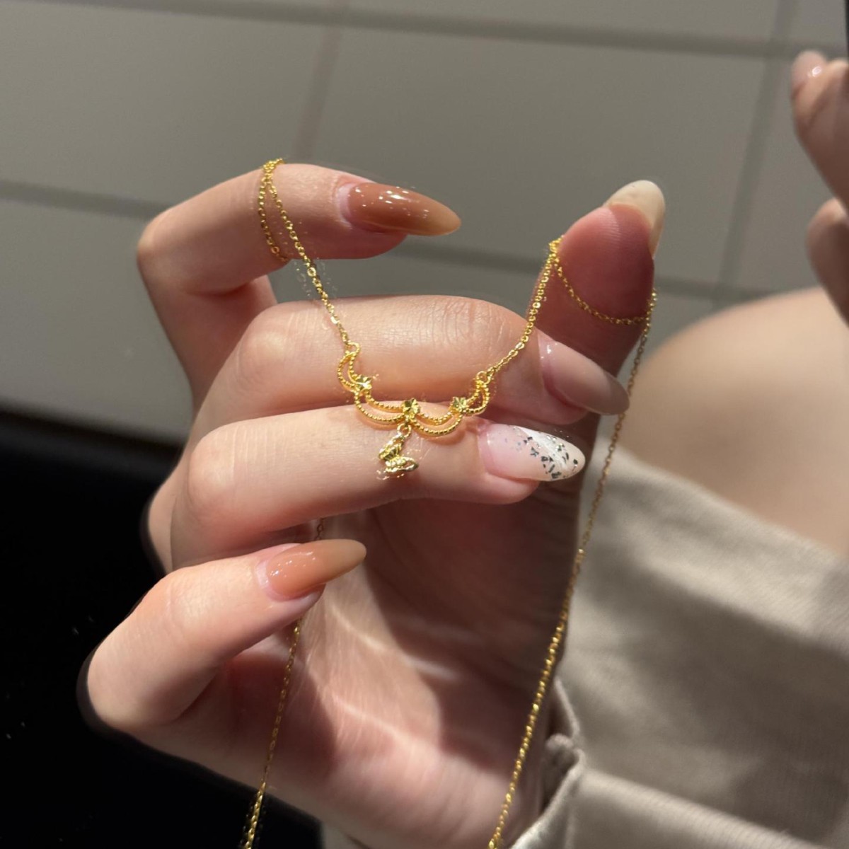 フランスの軽い豪華な透かし彫りの花の糸の蝶のネックレスの女性insの精緻な高級感の首の鎖のファッションの質感の鎖