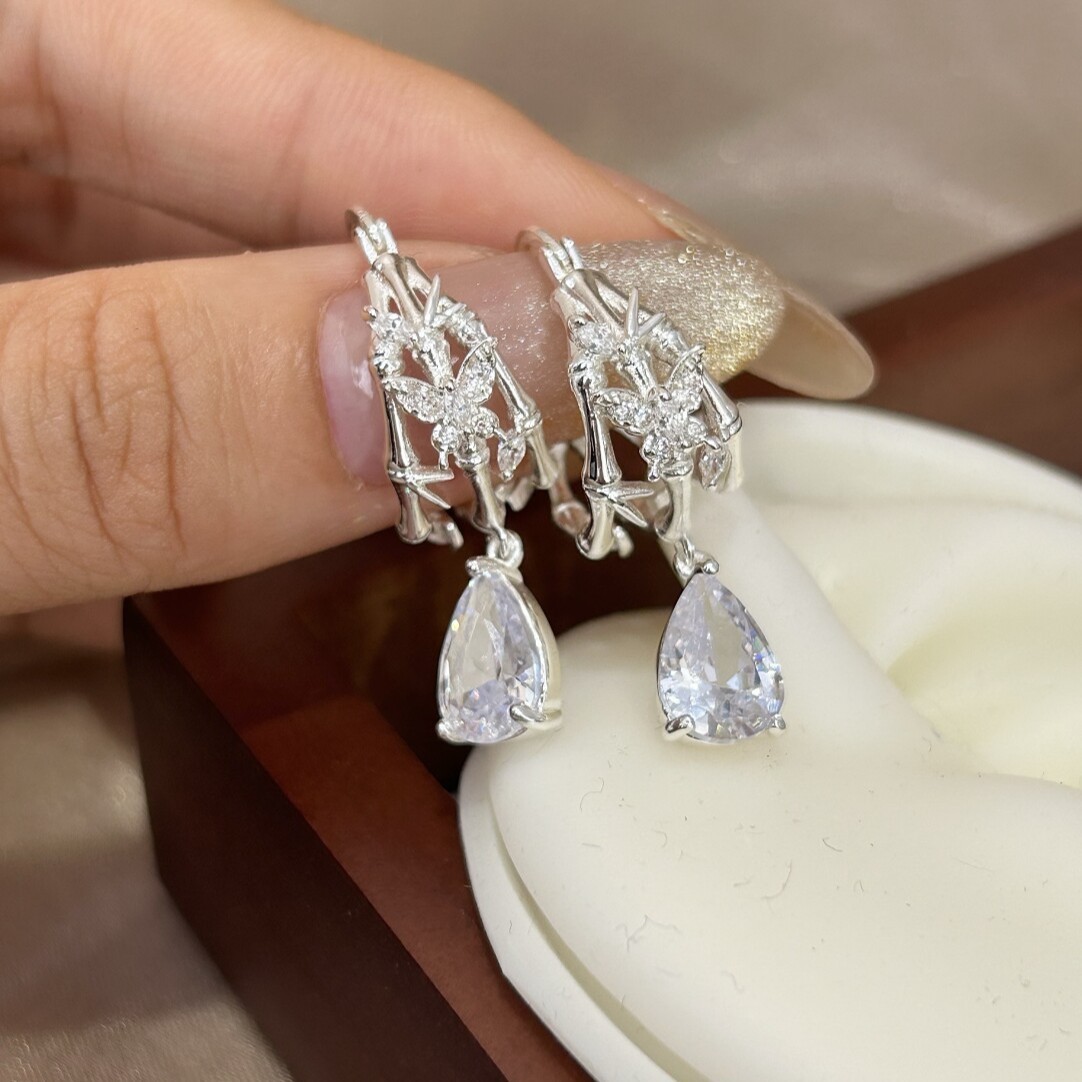 清冷感の透かし彫りの蝶のジルコンの耳のボタンの女性のvingateの個性の百合のイヤリングの大衆の設計感の耳の装飾品