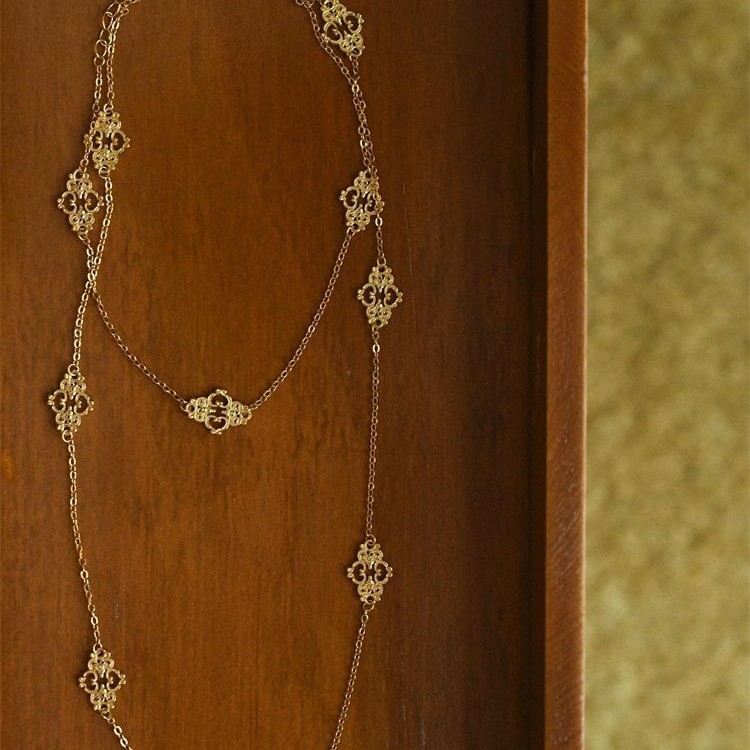 レトロ新中国式透かし彫りレース花柄ネックレス女性精致高級感首チェーン小衆個性デザイン鎖骨チェーン