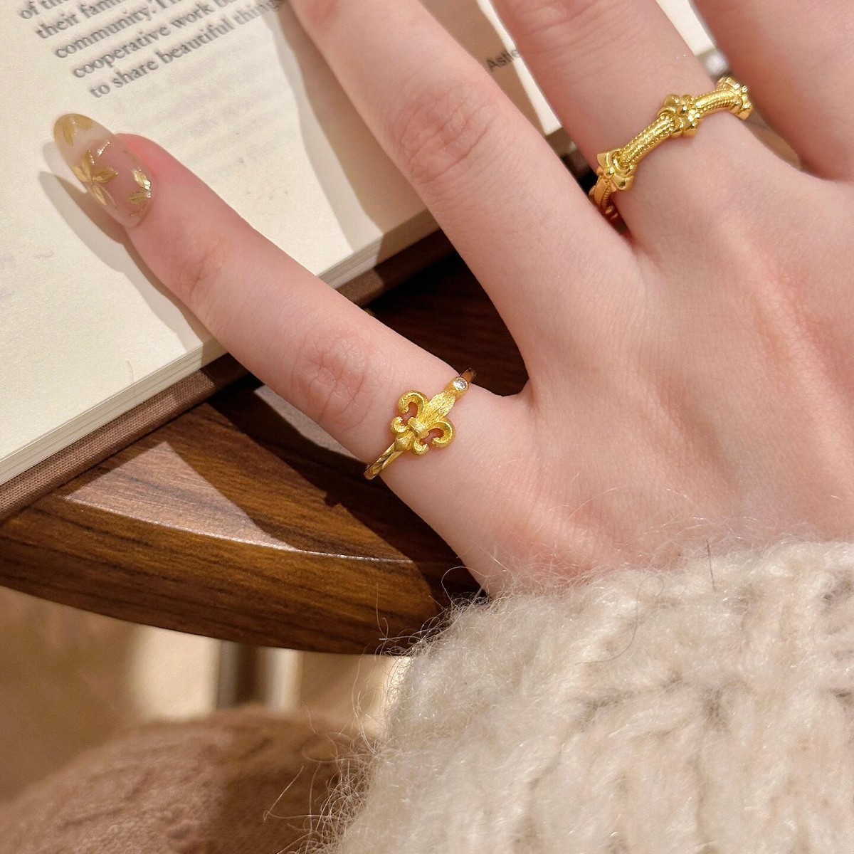 フランスの軽い贅沢なアイリスの指輪の女性insの古い法の伝承の指輪の小さい大衆の個性のデザイン感の指の指輪