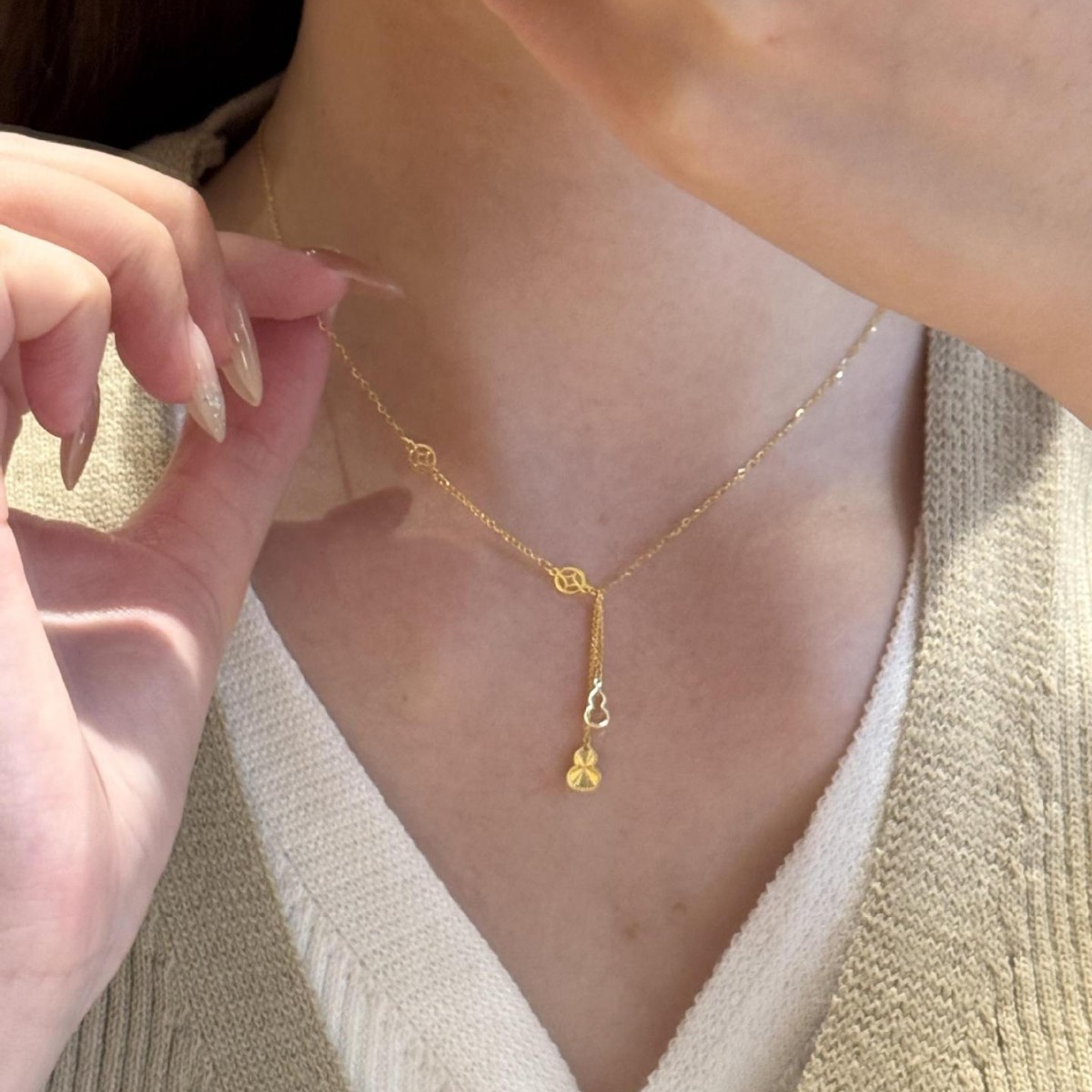 レトロ新中国式コイン透かし彫り双瓢箪ネックレス女性ファッション的な質感セーターチェーン小大衆デザイン感首チェーン