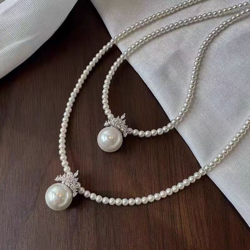 フルドリルの家の真円真珠のネックレスの女性vingateの豪華な高級感の首の鎖の小さい大衆の設計感の鎖の骨の鎖