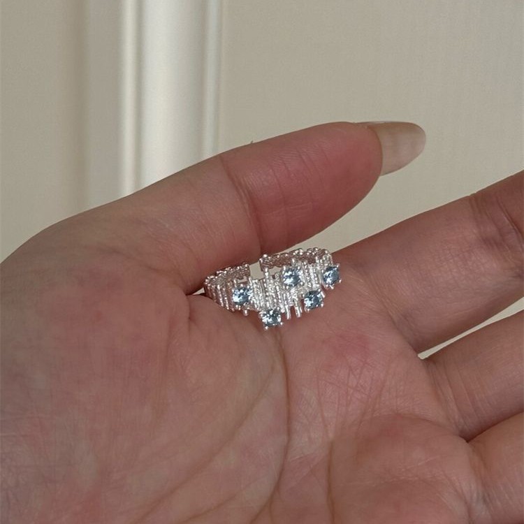 多用途でクールな不規則なブルーダイヤモンドオープンリング、女性用、絶妙でハイエンドのリング、ニッチなパーソナライズされたデザインの人差し指リング