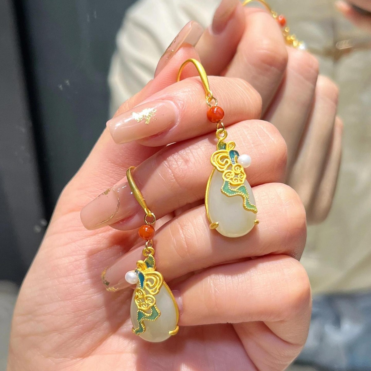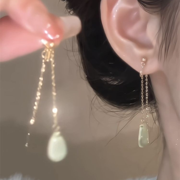 軽豪華宮廷風流蘇緑水滴ピアス女ins新中国式復古風イヤリング国潮百合耳アクセサリー