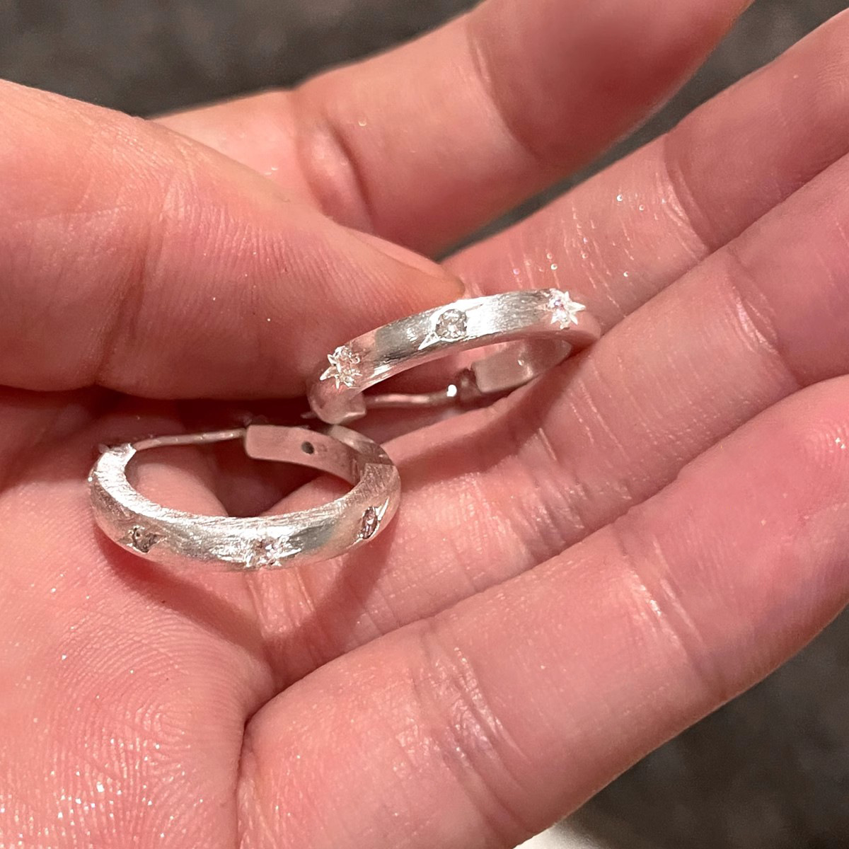 中古ダイヤモンドがちりばめられた六芒星の女性用イヤリング、ヴィンテージの絶妙でハイエンドのイヤリング、ニッチなデザインのイヤリング
