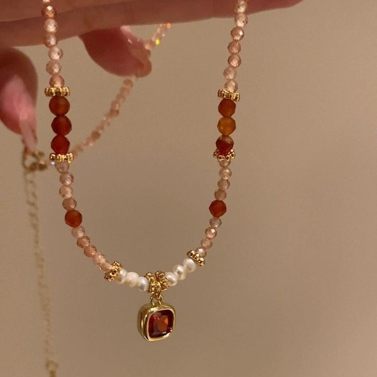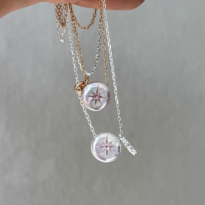 軽豪華高級感方糖真珠水晶ネックレス女ins森系百合ペンダント個性小衆デザインネックチェーン