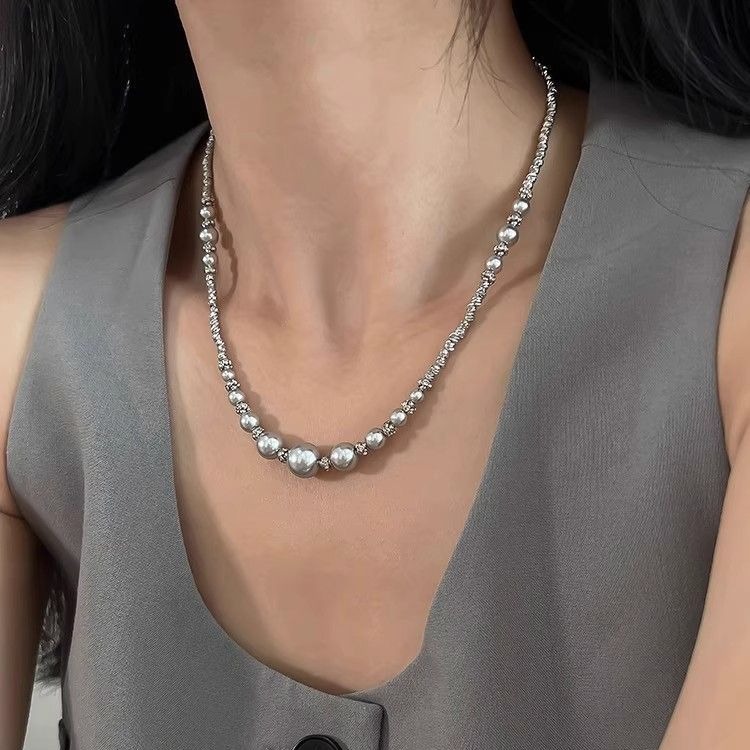 フランス施家真多銀灰切り花真珠ネックレス女性insデザイン高級感セーターチェーン秋冬鎖骨鎖