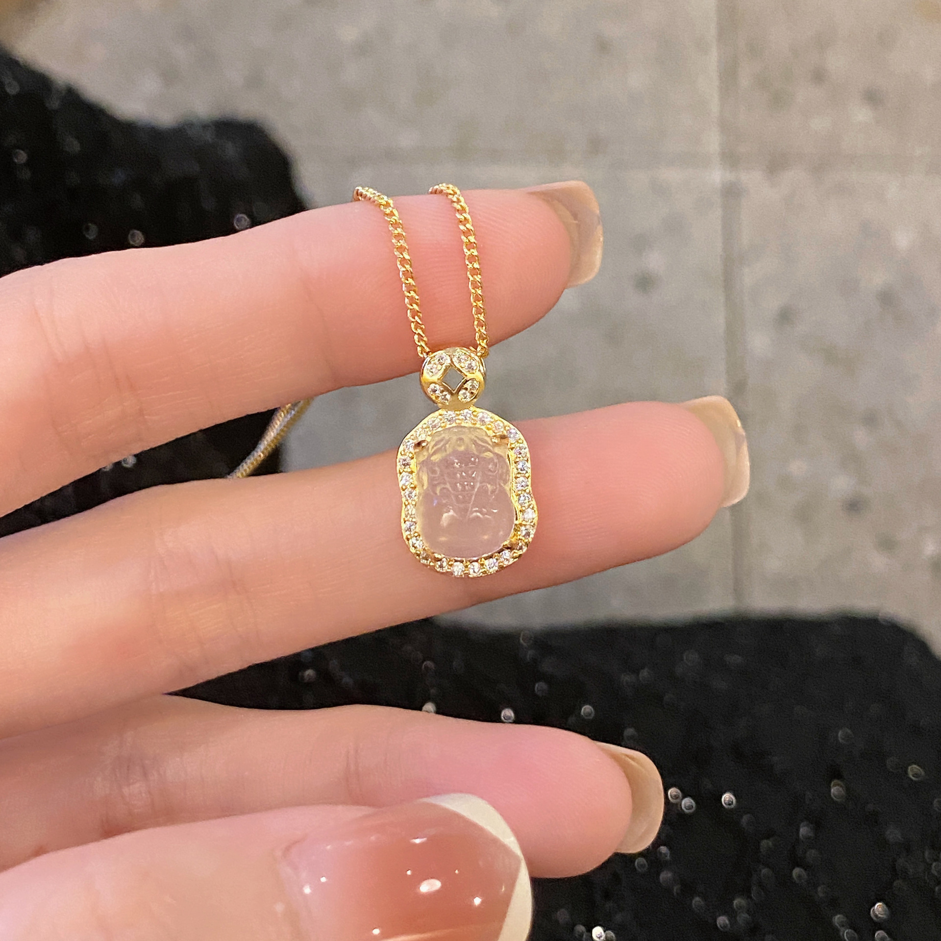 2024年に起爆した氷透銅銭の小さいピシュピストのネックレスの女性の復古の新しい中国式の設計のペンダントの百合の気質の首の鎖