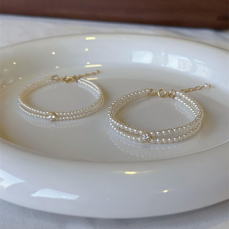 精巧なジルコンの極めて細い二重の小さい真珠のブレスレットの女性insは軽くて豪華です。
