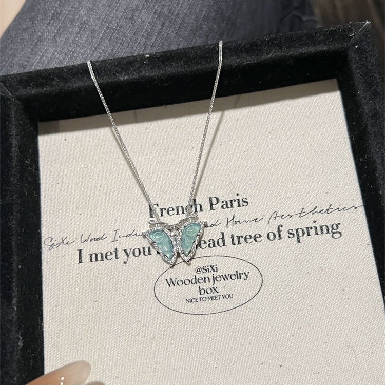 豪華で高級感があります。青い水の蝶のネックレスです。