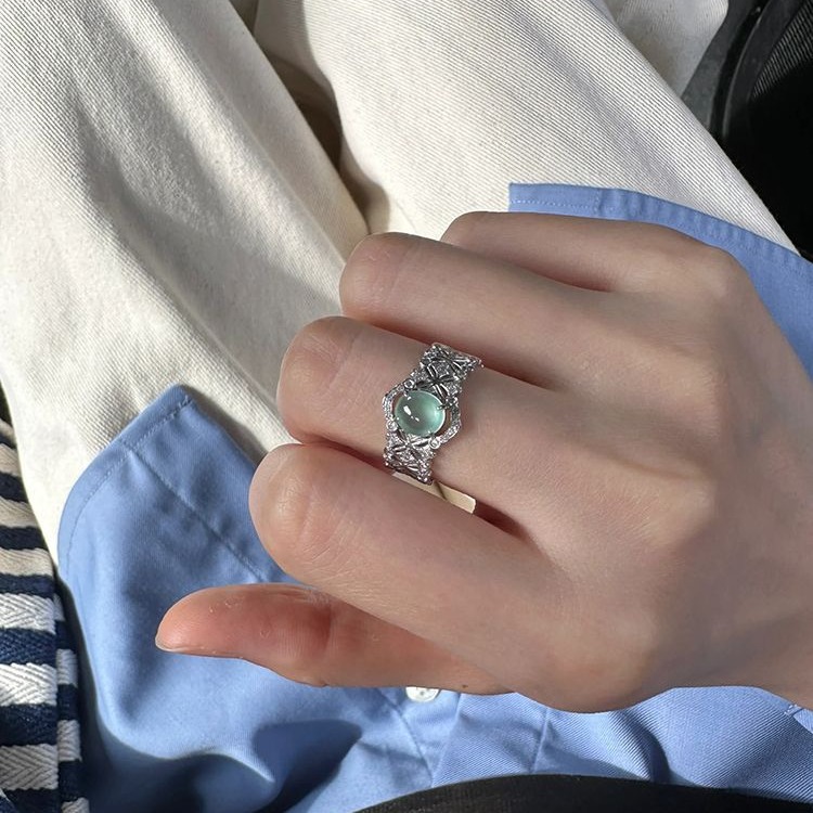 軽くて豪華な高級感の透かし彫りの氷のミントのレースの指輪insの洋風の豪華な指環の小さい大衆の設計感の食指の指輪