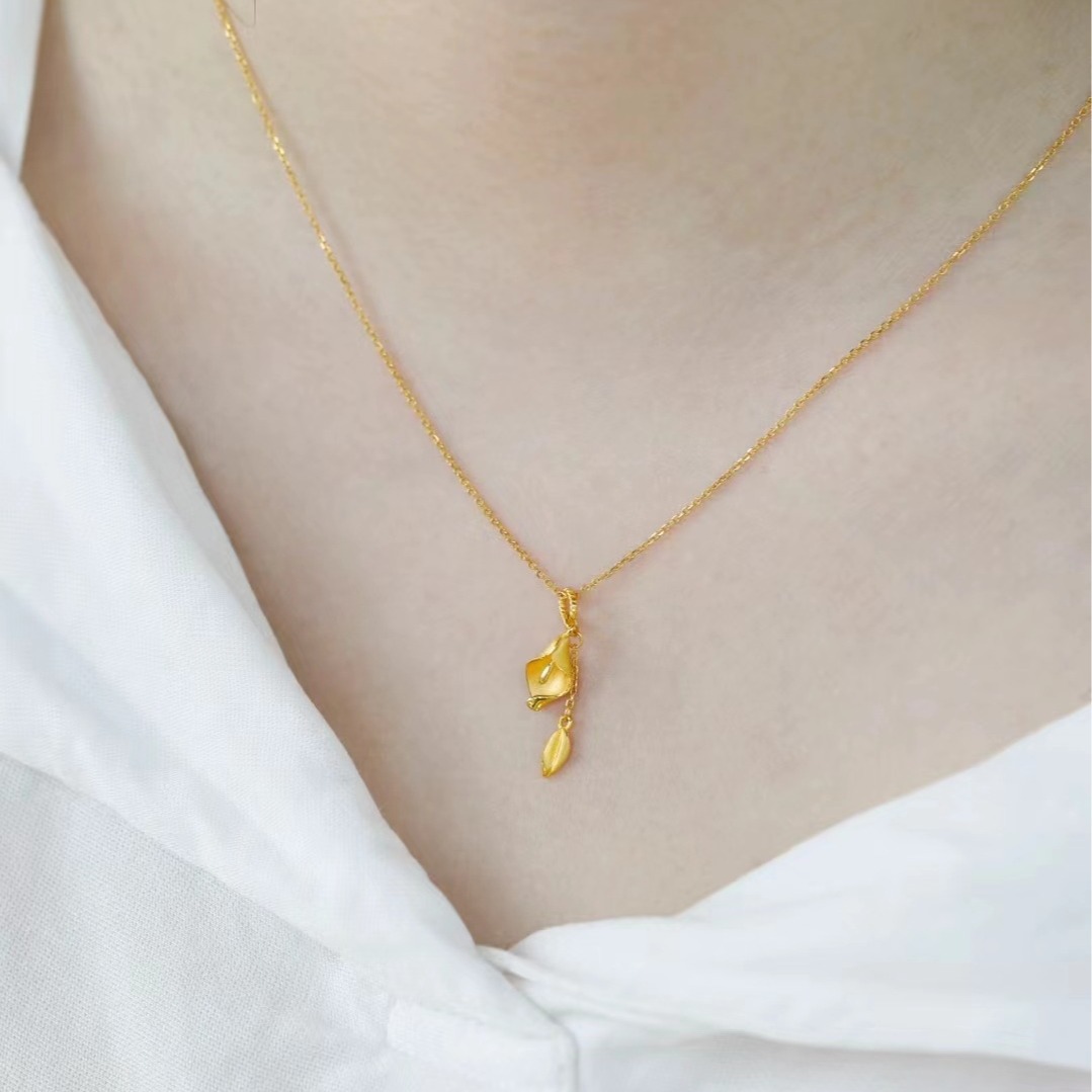 2024新型の軽豪華なレトロ黄金色の馬蹄蓮の花のフリンジネックレスは優しくて精巧なネックレスの女性に似合います。