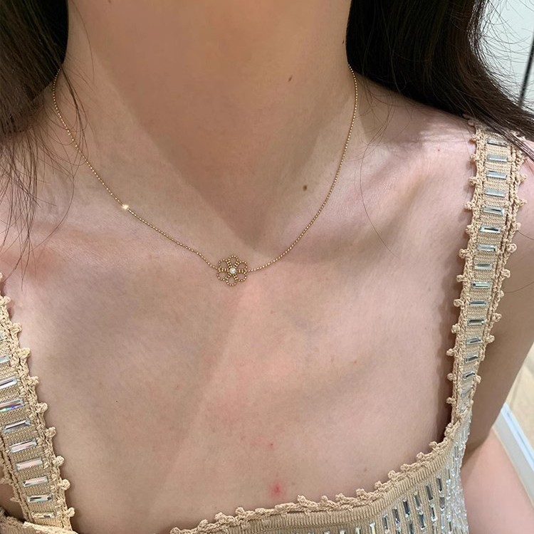 洗練された高級感透かし彫り真珠の花のネックレス