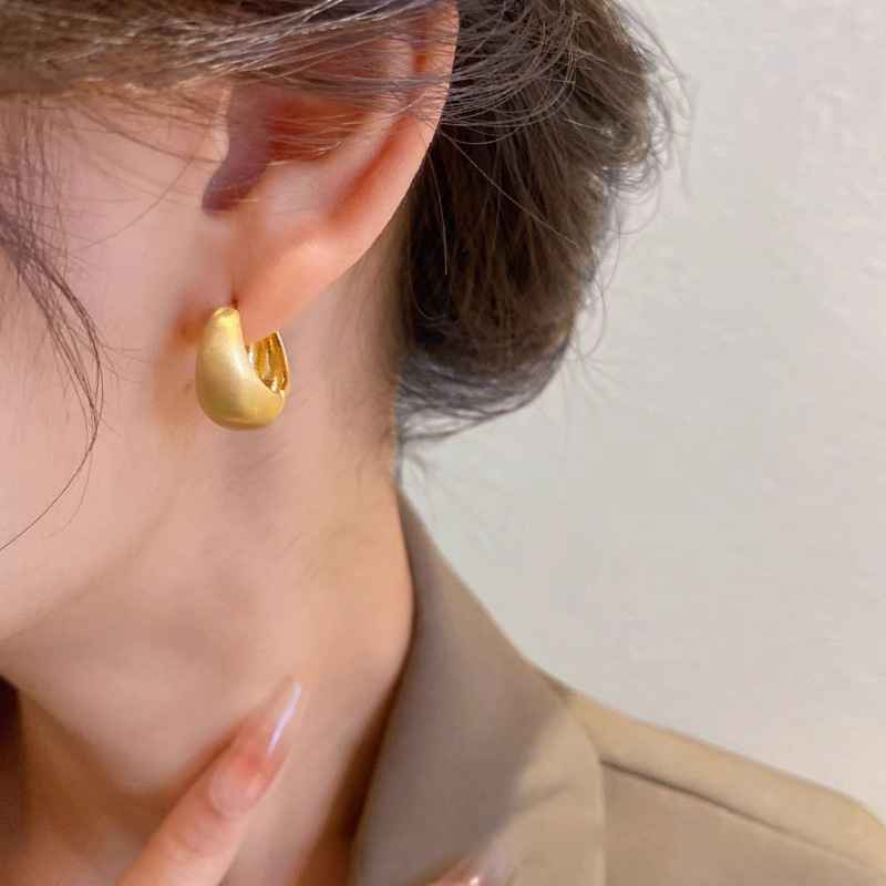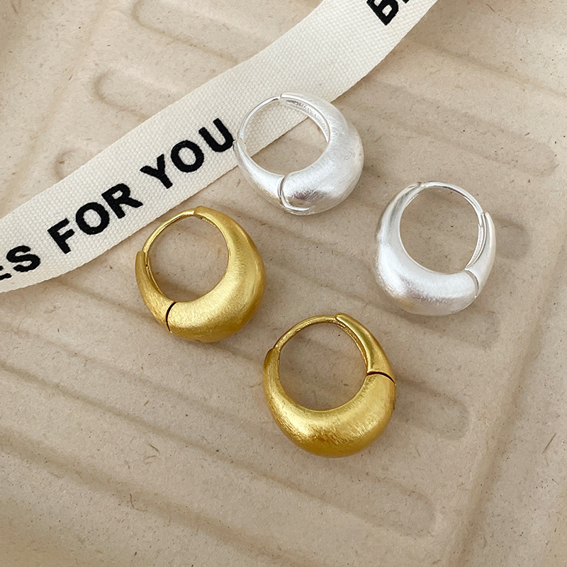 女性用フレンチハイエンドブラッシュプレーンフープイヤリング、ヴィンテージシンプルコールドスタイルイヤリング、ニッチデザインイヤリング