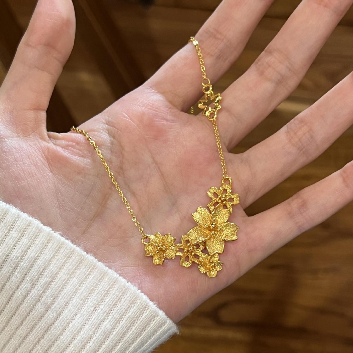 中古の金三生三世の花は錦のネックレスのようです。