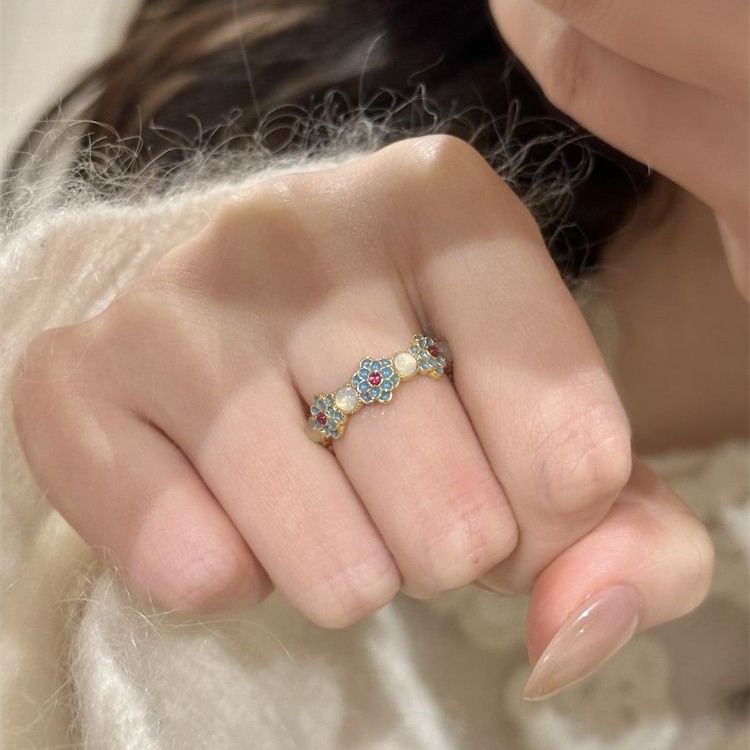 新中国式エナメル青と花の磁器の指輪