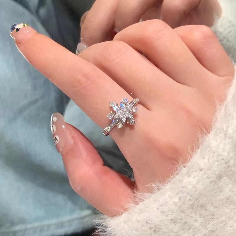軽豪華日韓満ドリル二重雪花指輪女ins精致高級感指環小衆デザイン感食指戒