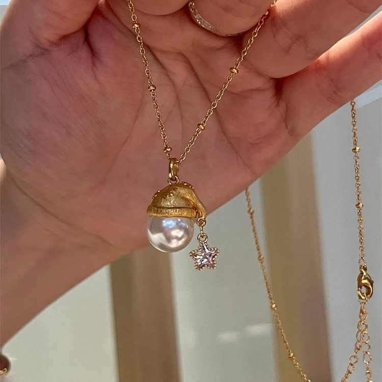 フランスの軽い贅沢なクリスマスの星の真珠のペンダントのネックレスの女性の精緻な高級感の首の鎖の独特な大衆は鎖の鎖を設計します。