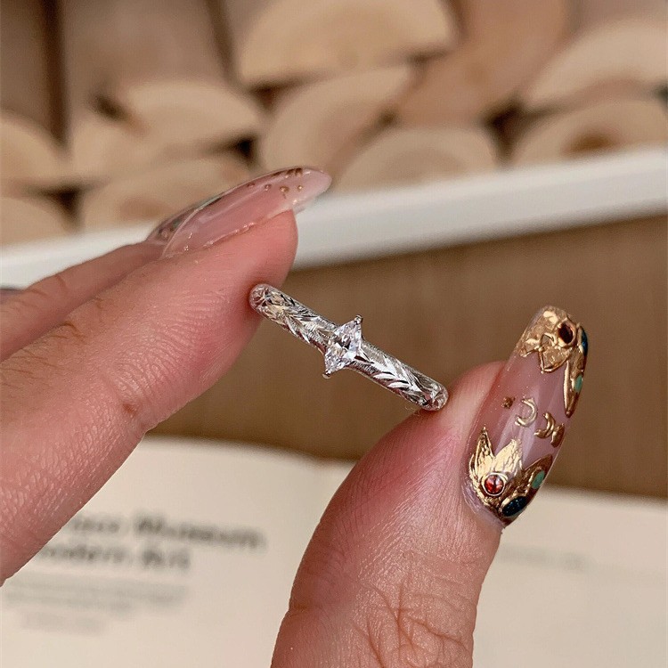 百合清冷感フラッシュドリル青ジルコン指輪女性シンプルで冷たい風の指輪