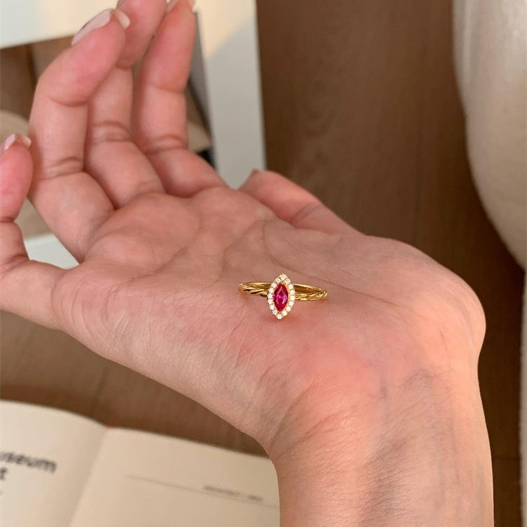 中古風のほのかなバラの赤い馬の目のダイヤモンドの指輪の女性の軽豪華な大衆の設計の指輪の精緻な高級感の食指の指輪
