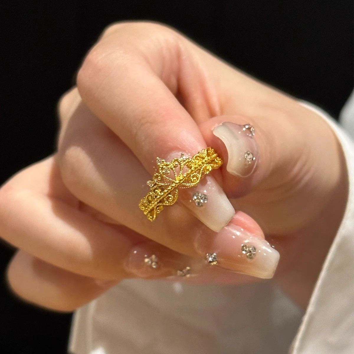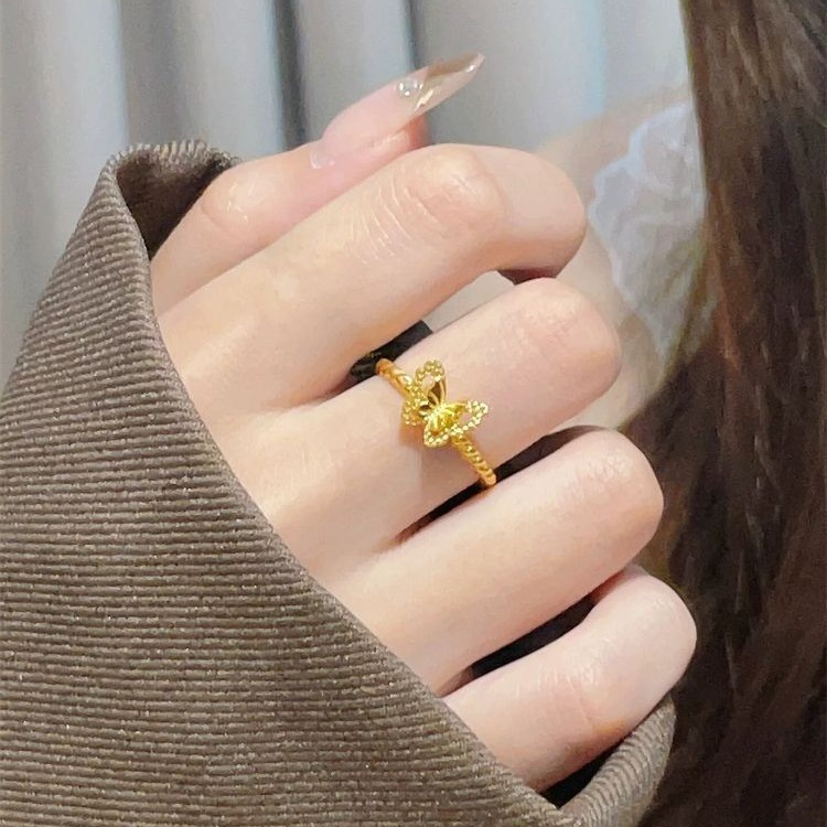 豪華で高級感のある透かし彫りの蝶の指輪