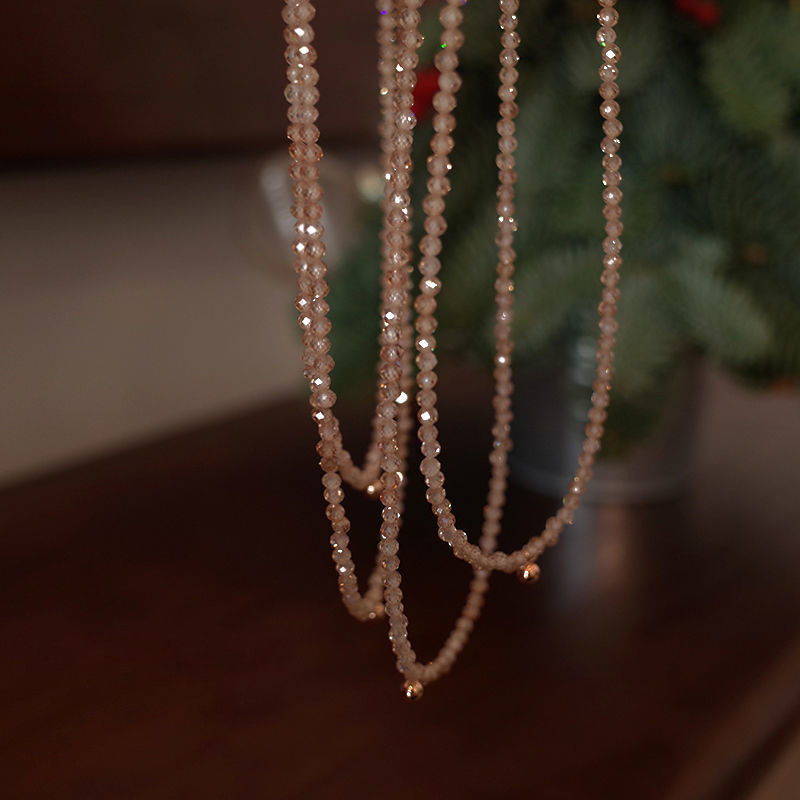 流金の歳月は水晶のビーズのネックレスの女性insの豪華な高級感の首の鎖の小さい大衆の設計感の鎖の骨の鎖を輝かせます。