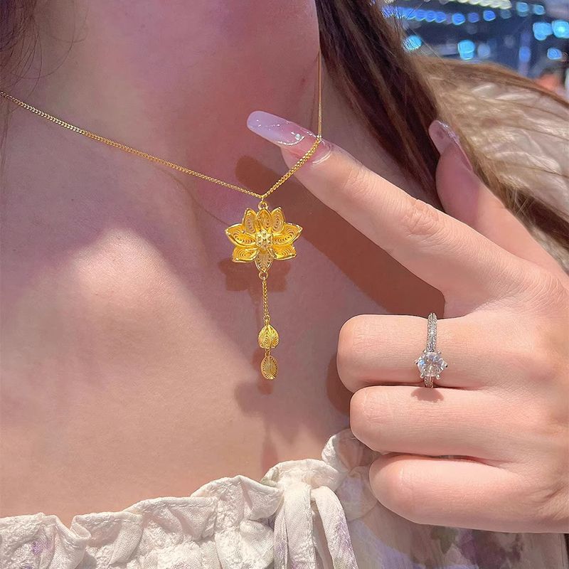 軽くて豪華な中国風の流蘇蓮の花のネックレスの女性のヴィンテージの新しい中国式の復古風のペンダントの清新な百合首のチェーン