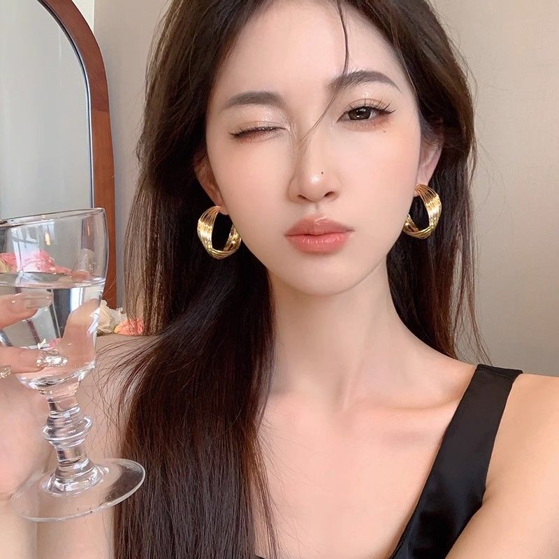 贅沢で高級感のあるツイストリングのイヤリングです。