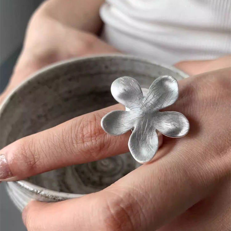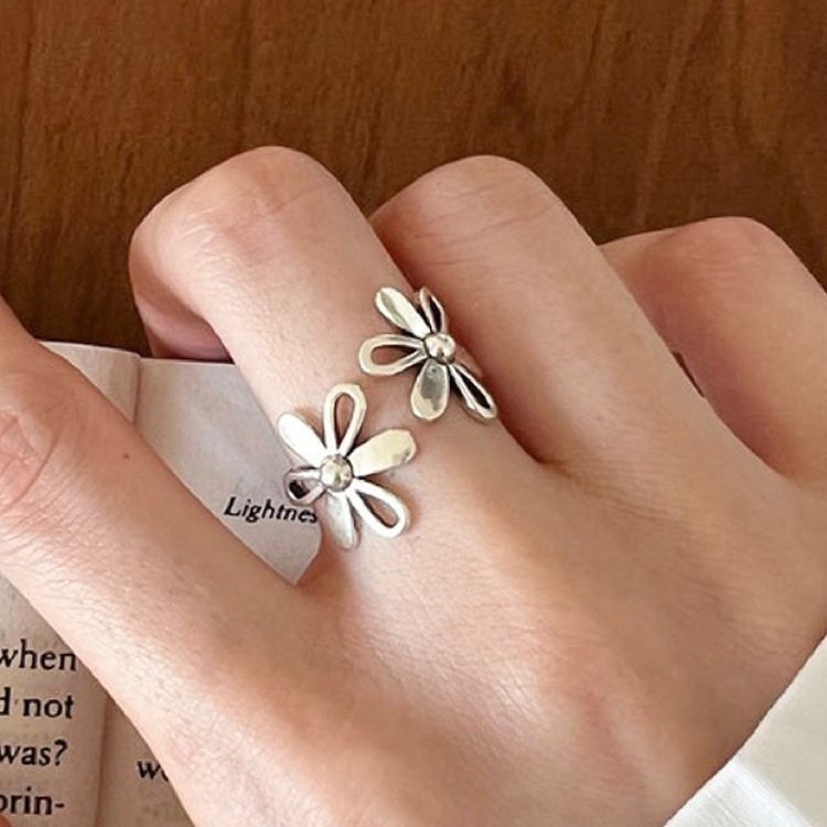 シンプルで冷たい風の透かし彫りの花の指輪の女性insのフランス式は古い指環をします。