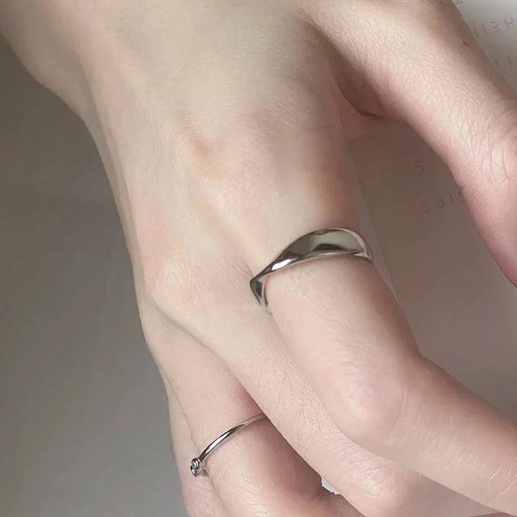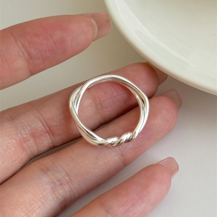 シンプルで冷たい風のモビウスの波紋の指輪の女性の百合の清冷感の指輪の小さい大衆の個性の設計の食事の指輪