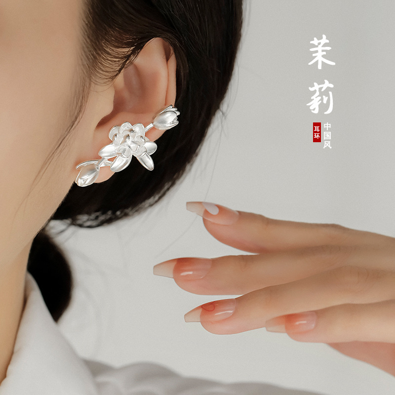 新中国式の清冷感ジャスミンのつぼみの耳の骨は組み合わせのヴィンテージの軽くて豪華な小さい大衆の国風の設計の耳の装飾品を挟みます。