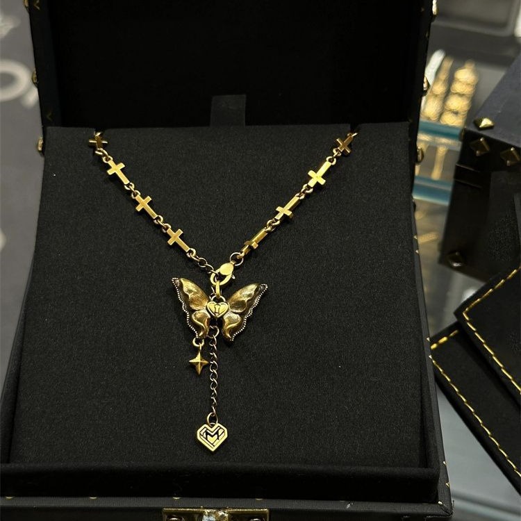 軽豪華高級感クロス流蘇蝶ネックレス女性ins甘いクールギャル風ペンダント森系百合首チェーン